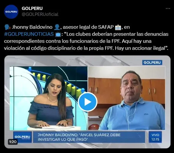 Lo explica de forma explícita el encargado legal de un área importante en el deporte rey nacional. Jhonny Baldovino, asesor legal de SAFAP, fue duro y dio una recomendación al respecto de lo que se vio hace unos días. Asumiendo un rol protagónico con lo que mencionó en esta entrevista.
