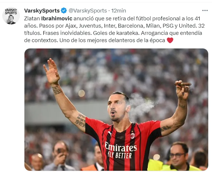 Llegando a la conclusión a sus 41 años, y vistiendo los colores del AC Milan, Zlatan Ibrahimovic decidió terminar con su carrera profesional.