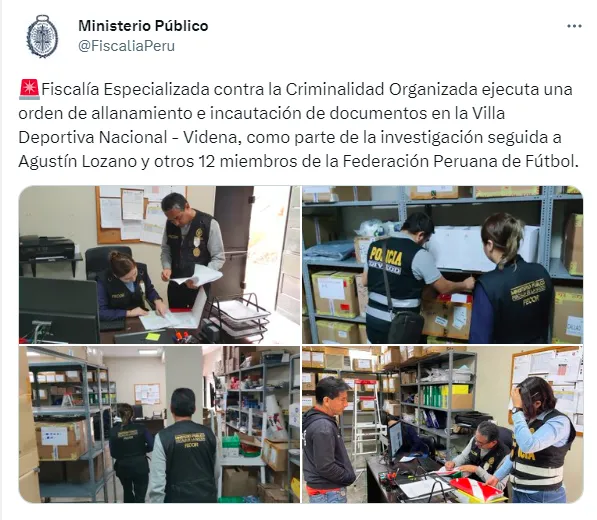 “El Fiscal Provincial solicitó autorización al juez para poder ingresar una vez más a las instalaciones de La Videna, el juez autorizó el ingreso de los fiscales con la finalidad de recabar información respecto a la utilización que se estaría haciendo por partes ajenas a la FPF, así como algunos bienes que son materia del asunto”, indicó el fiscal encargado para Radio Ovación.