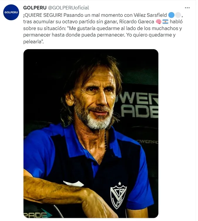 Siguiendo con su alocución, Ricardo Gareca fue claro al precisar que él quiere seguir al mando de Vélez Sarsfield.