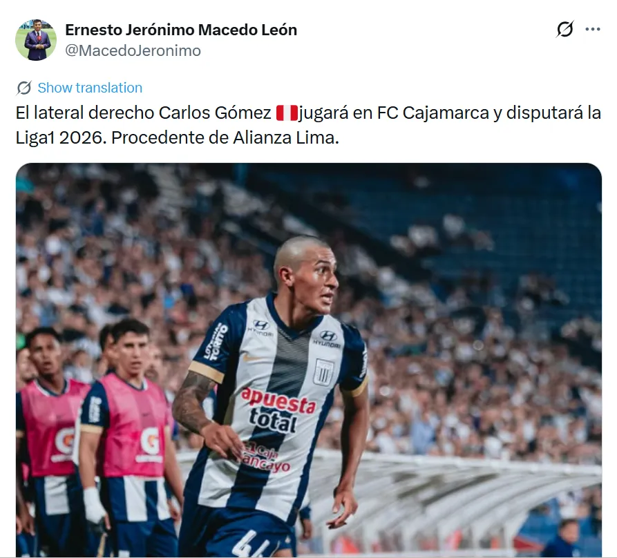 Según lo informado por el periodista deportivo Ernesto Jerónimo Macedo, el recién ascendido FC Cajamarca ya trabaja en la conformación de su plantel para el 2026, y el primer refuerzo proveniente del cuadro ‘íntimo’ sería un lateral derecho.