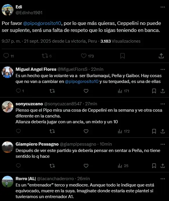 El gran nivel que mostró no pasó desapercibido para los hinchas de Alianza Lima que lo quieren como titular en la Copa Sudamericana. Esto debido a lo que puede entregar con la creatividad, es un futbolista que con el balón sabe construir muy bien las jugadas de ataque. Por lo que podría llegar a ser peligroso frente a una Universidad de Chile que va a buscar proponer más en condición de local.