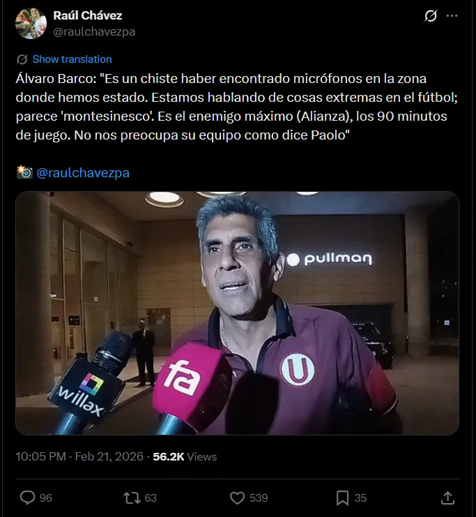 Luego de dichas palabras que claramente generaron ruido en el ámbito deportivo nacional, desde Universitario de Deportes no se quedaron callados y fue Álvaro Barco quien remeció la situación con un contundente mensaje. “Alianza Lima es el enemigo máximo durante los 90 minutos de juego. Sin embargo, no nos preocupa su equipo, como dice Paolo”; mencionó en charla Raúl Chávez.
