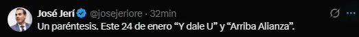 Incluso el actual presidente de la república, José Jerí no dudó en dejar un mensaje de unión para ambas hinchadas. “Un paréntesis. Este 24 de enero “Y dale U” y “Arriba Alianza”, fue lo que posteó en sus redes sociales. Esto a pesar que se conoce que Jerí es hincha confeso del cuadro ‘crema’. Pero en este caso, como autoridad llama a la paz para que se pueda dar un gran evento deportivo.