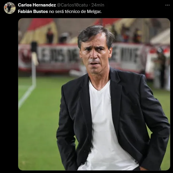 Al estar libre lo vuelve un candidato importante. No obstante, otro periodista dar por confirmado que Bustos no llegará al ‘Dominó’. Carlos Hernández mediante sus redes sociales confirmó que no hay nada con el argentino. Así que habrá que esperar un poco más para ver cual es la decisión de Melgar en busca de un nuevo entrenador.