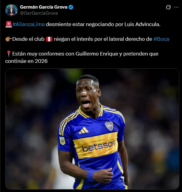 Su nombre estuvo muy relacionado a Alianza Lima y se conoció que habrían estado hablando con ‘Bolt’ a espaldas del cuadro ‘xeneize’. No obstante, esto terminó siendo descartado por el mismo club, así lo dio a conocer Germán García en sus redes sociales. Guillermo Enrique al parecer continuará en ‘Tienda Blanquiazul’ para el próximo año.