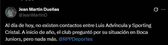 El periodista Jean Martín Dueñas pudo dar a conocer que por parte del cuadro del Rímac no ha habido acercamiento en este momento por Advíncula. Más bien, las consultas que se hicieron a Boca fue a inicio de año, después no se ha hecho nada más para poder tener al defensor en el plantel del próximo año.
