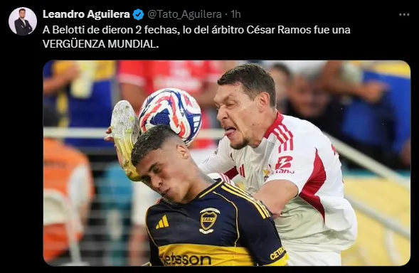 Por su lado, el periodista argentino Leandro Aguilera se vio sorprendido por la cantidad de fechas que le dieron a los jugadores ‘boquenses’. Dejando la acción de Belotti que fue un golpe posiblemente más fuerte que el de los otros futbolistas, pero le dieron menos fechas de sanción.