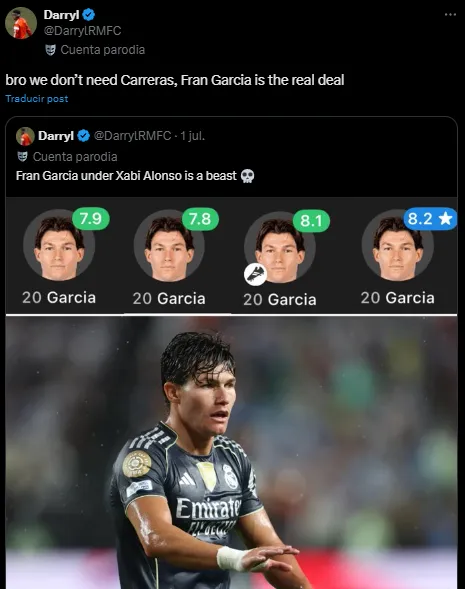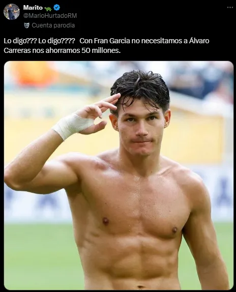 “No necesitamos a Carreras, Fran García es el verdadero fichaje” y “nos ahorramos 50 millones gracias a Fran García” han sido algunos de los comentarios más destacados al respecto. En tanto, entre los memes, han puesto que lo de García destaca al nivel de Marcelo o Cristiano Ronaldo en sus mejores épocas, todo gracias a ese interés que nació por el lateral del Benfica.
