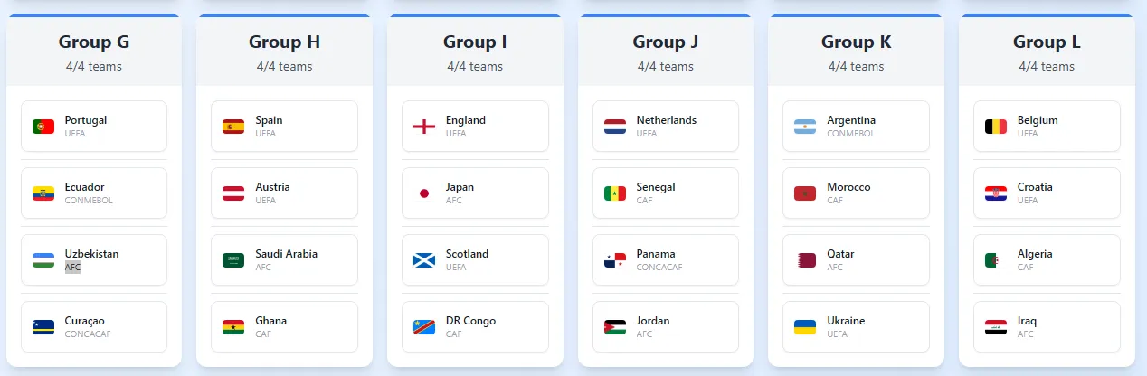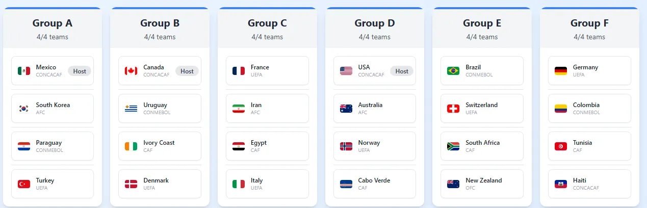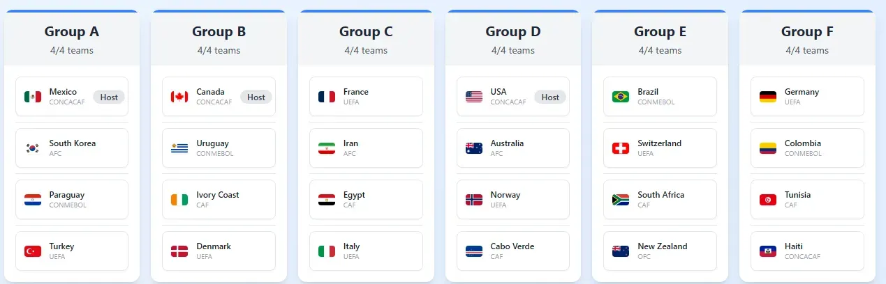 De esta forma, con las 48 selecciones clasificadas de esta forma quedaría la fase de grupos: