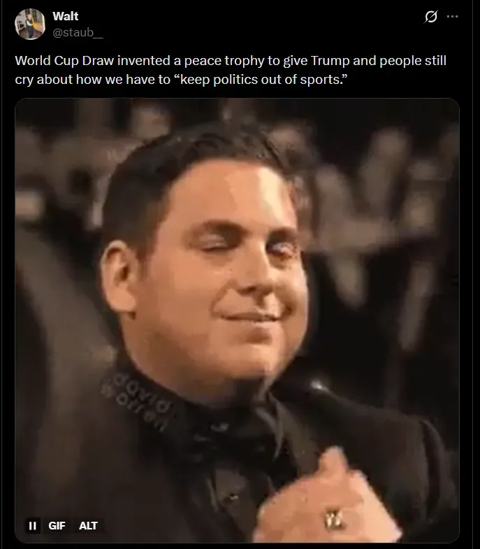 En principio, Donald Trump fue elegido para adjudicarse el premio FIFA de la paz y claramente esta situación no pasó desapercibido por todos los problemas políticos que sostiene desde un buen tiempo. Por otro lado, Gianni Infantino fue prácticamente el maestro de ceremonia del sorteo del Mundial 2026 en el inicio del evento, así que también es parte de las risas en el mundo digital.