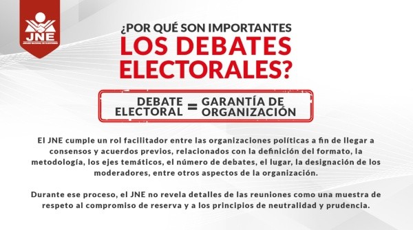Para ese día, el objetivo del Jurado Nacional de Elecciones es que la ciudadanía esté lo más infomada posible con respecto a las opciones. Por ello, organizó un debate en el que los candidatos expondrán sus ideas y propuestas.