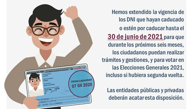 Según la información de la ONPE desde sus voceros oficiales: “los ciudadanos no tienen que renovarlo para participar de esta elección”. La Reniec realizó esta prórroga mientras el país vivía un estado de emergencia nacional por la pandemia mundial.