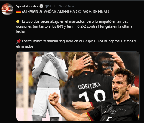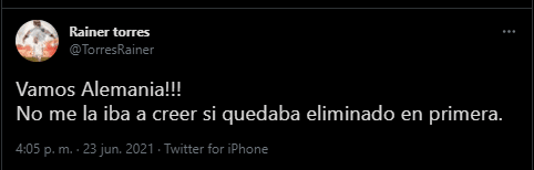 Finalmente fue un ajustado empate 2-2, y las redes sociales se sorprendieron por el resultado final. Uno de los comentarios más llamativos fue el de Rainer Torres, quien utilizó su cuenta de Twitter para alentar a la ‘Die Mannschaft’.