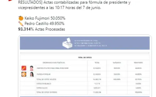 AHORA – PERÚ VOTA: ONPE al 93.314%: