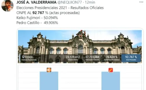 AHORA – PERÚ VOTA: ONPE al 92,767%: