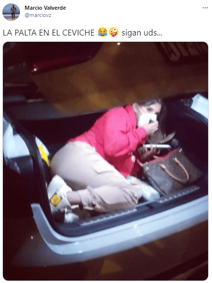Yahaira Plasencia aparece en la famosa fotografía, escondida dentro de la maletera de un automóvil. Tratando de esconderse de la Policía Nacional del Perú, quienes estaban buscando a los responsables de esta fiesta que fue notificada por los vecinos de Cieneguilla. Ahí ‘La Yaha’ se hizo viral, por estar en forma recogida, dentro del vehículo.