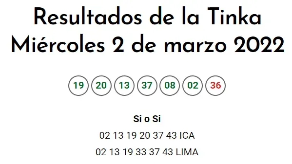 RESULTADOS| La Tinka delmiércoles 2de marzo | Resultadosy números ganadores en la Lotería de Perú: