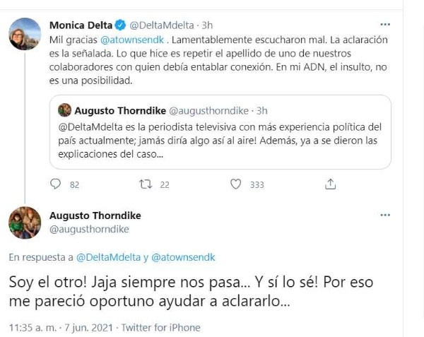 “Lamentablemente escucharon mal. La aclaración es la señalada. Lo que hice es repetir el apellido de uno de nuestros colaboradores con quien debía entablar conexión. En mi ADN, el insulto, no es una posibilidad”, escribió en sus redes.