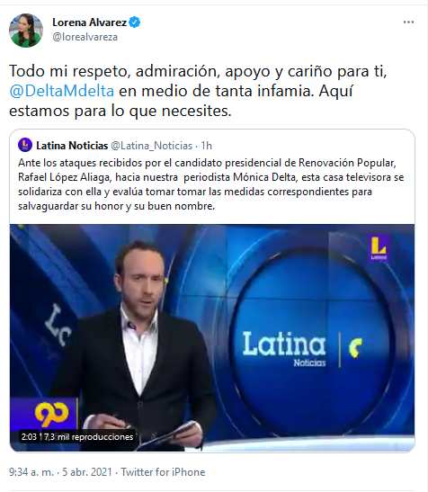 Este domingo, en Latina, canal donde trabaja la víctima, sacó un comunicado. Más comunicadores se sumaron. Incluso Jaime Bayly de Willax, el medio defensor del candidato, se soladorizó con su colega.