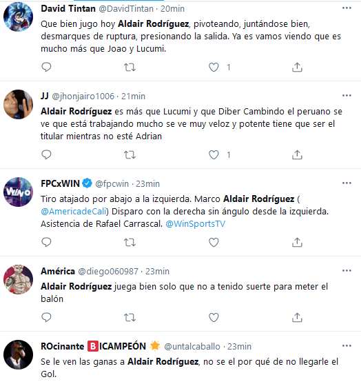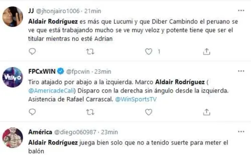 Además, sus siguientes minutos fueron positivos. Tal fue así que los hinchas del América de Cali lo elogiaron en las redes. Resaltaron su velocidad y actitud.