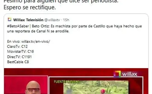 La propio comunicadora Lourdes Paucar lo desmintió: “Esta afirmación es una MENTIRA. Me arrodillé para tener un mejor equilibrio y sostener el micrófono. El ABC del periodismo es preguntar y Beto Ortiz no lo hizo. Inventó una historia y la dijo en su programa. Pésimo para alguien que dice ser periodista. Espero se rectifique”.