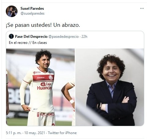 En medio de todo esto, a algunos les queda humor y esto se aplaude. Este es el caso de Susel Paredes, virtual congresista del Partido Morado, que fue troleada por una reconocida página deportiva.