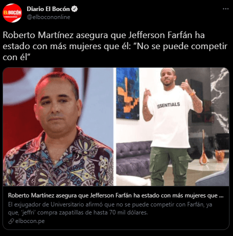 En la emisión del programa ‘En Boca de Todos’, hicieron contacto con Roberto Martínez y ahí le consultaron sobre su fama con las mujeres, las cuales han sido parejas a lo largo de toda su vida. Comparándolo con Jefferson Farfán, quien tiene también una fama de ‘casanova’.
