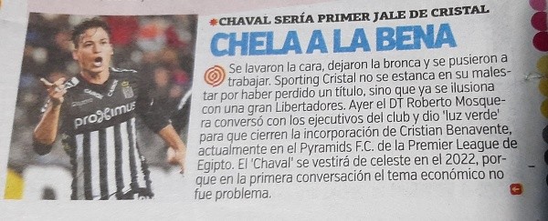 Hablamos de nada menos que de Cristian Benavente. El Chaval, según la portada de Líbero, ha despertado interés en la directiva de Alianza Lima, al igual que otros jugadores. Igual, aún no hay nada avanzado. El rio solo viene sonando y quizás triaga piedras.