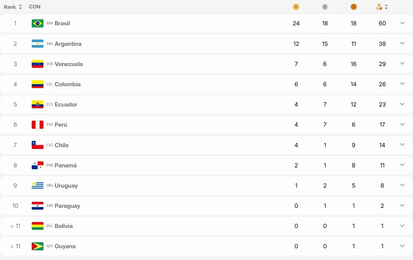 Así va el medallero de los Juegos Suramericanos de la Juventud 2026