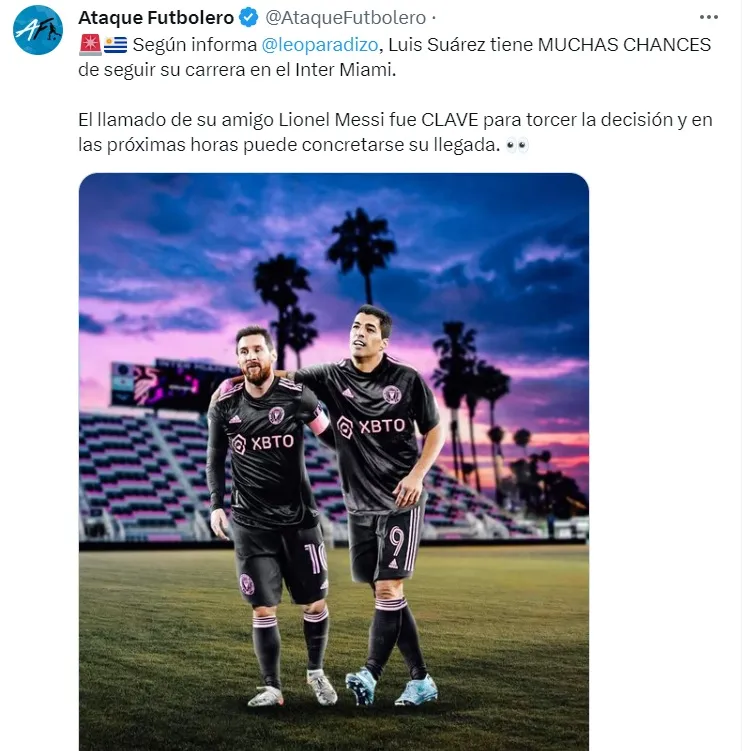 Conociéndose que Lionel Messi se decidió por el Inter Miami y jugará en la MLS la próxima temporada, el astro argentino quiere un refuerzo para ganarlo todo. Entendiendo que el club hoy está último en su conferencia, un crack más de calidad es urgente.