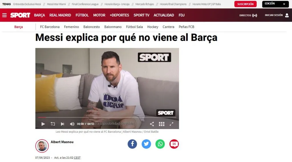 Lionel Messi estará jugando en el Inter Miami después de muchas vueltas en su vida. Podría estar ahora mismo en su casa, con camiseta del FC Barcelona, pero eso no sucederá, y el propio jugador lo cuenta en una entrevista exclusiva de SPORT.