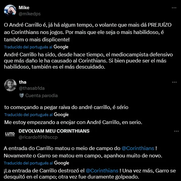 Por parte de los hinchas no están nada contentos con el rendimiento que está teniendo el peruano. Su nivel ha bajado bastante en los últimos juegos y en este choque no entró nada bien. Incluso manifiestan que causó que el mediocampo del ‘Timao’ termine teniendo problemas.