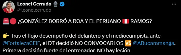 Así lo pudo confirmar el periodista Leonel Cerrudo en sus redes sociales. David González es nuevo en el cargo, tan solo ha dirigido un partido hasta lo pronto y por lo que ha podido ver de Luis Ramos no lo ha terminado de convencer mucho. Lo que deja un precedente para que el 9 patrio se ponga las pilas o podría terminar sin más oportunidades en este club.