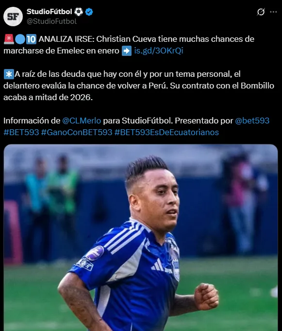 ¿Se va de Emelec? Hermano de Christian Cueva sorprendió con inesperada publicación sobre su futuro