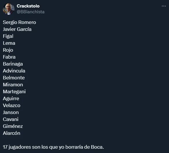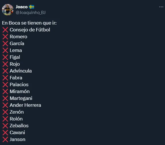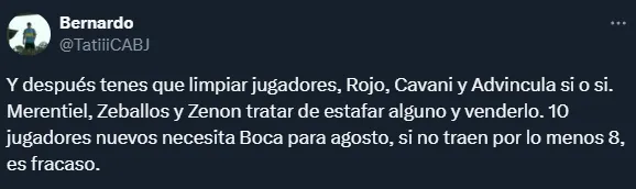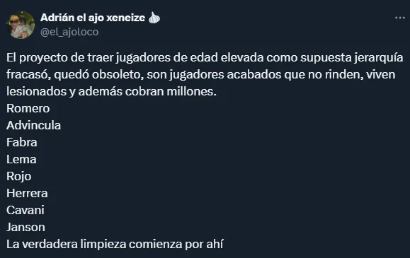 Respecto a esto último, los fanáticos de Boca piden una limpieza debido a que hay jugadores que no están rindiendo de acuerdo a lo que demanda el club. Hay desde referentes como Edinson Cavani o Marcos Rojo hasta fichajes recientes como el caso de Alan Velasco. Entre ellos, también figura Luis Advíncula.