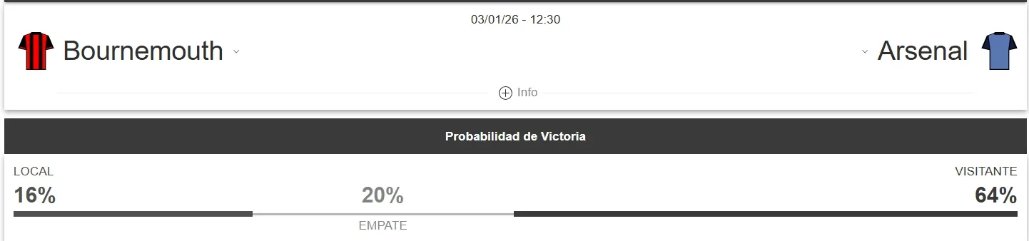 Según las estadísticas, Arsenal tiene una gran ventaja en el partido ante Bournemouth, tal como lo muestra la gráfica.