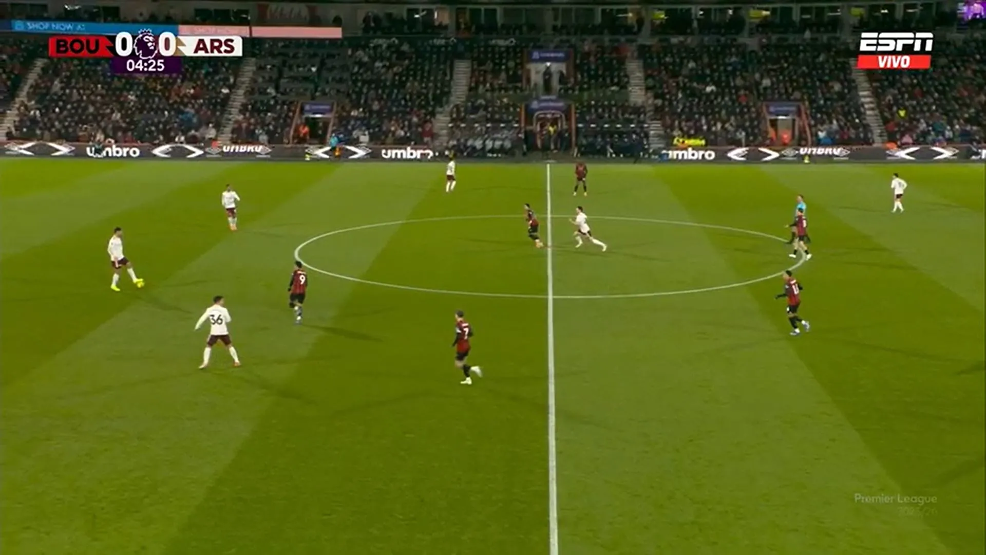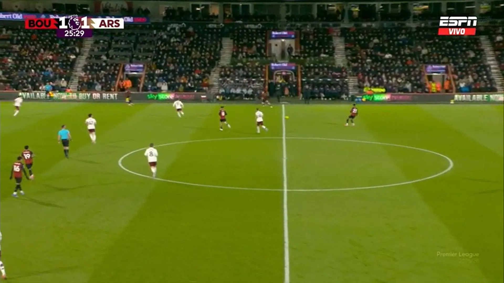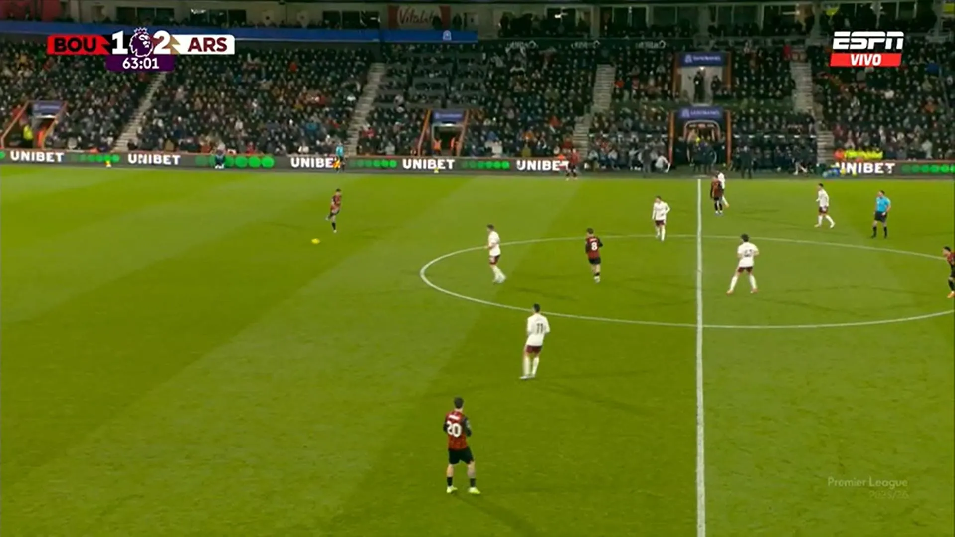 Bournemouth tuvo la primera opción del partido, pero de ahí en más todo es del Arsenal. Si bien todavía la visita no llega al arco del local, sí tiene la pelota y también es paciente esperando el espacio.