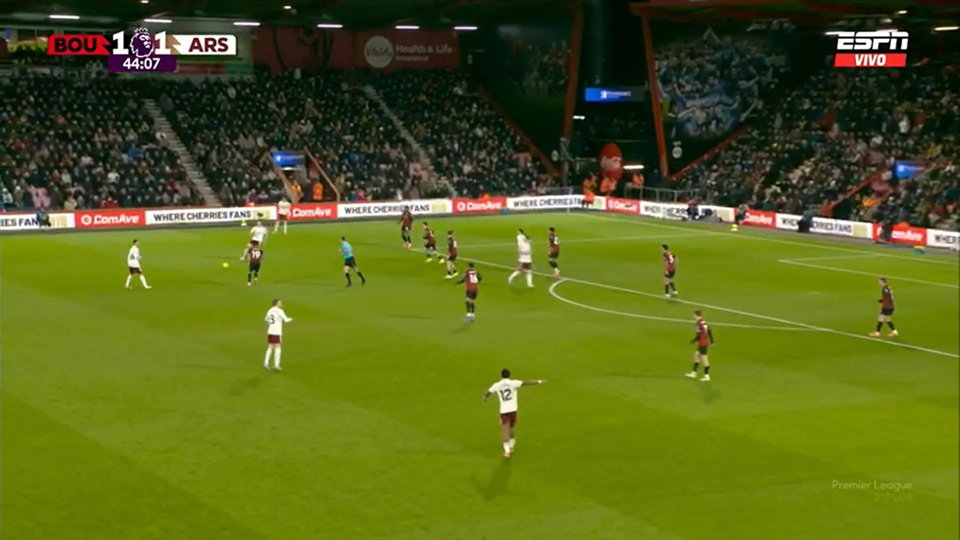 Se volvió a encender el partido gracias al gol de Eli Junior Kroupi. Decíamos que estaba cerrado el partido, pero el gol ha revivido al Bournemouth y Arsenal ahora está replegado.