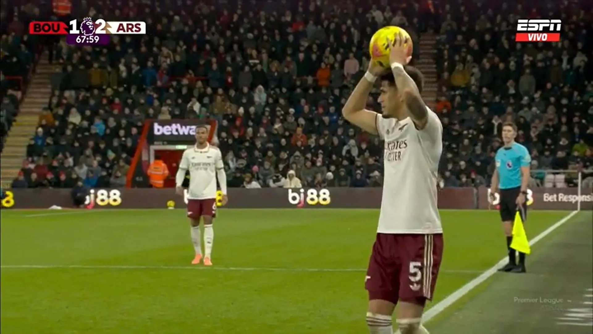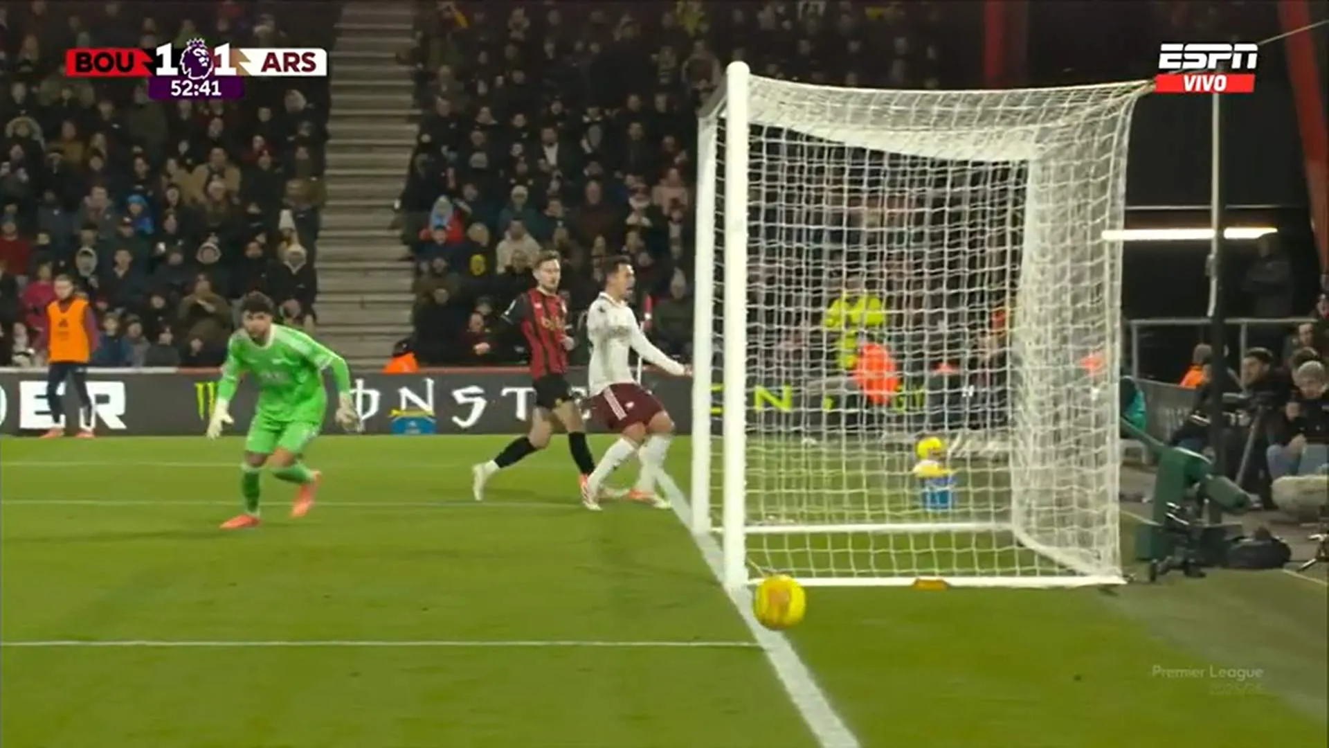 Luego de una serie de rebotes tras remates dentro del área del Bournemouth, Gabriel Magalhaes fue el que terminó con la ventaja del local con un zurdazo. Ahora se empata 1-1 y tenemos partidazo.