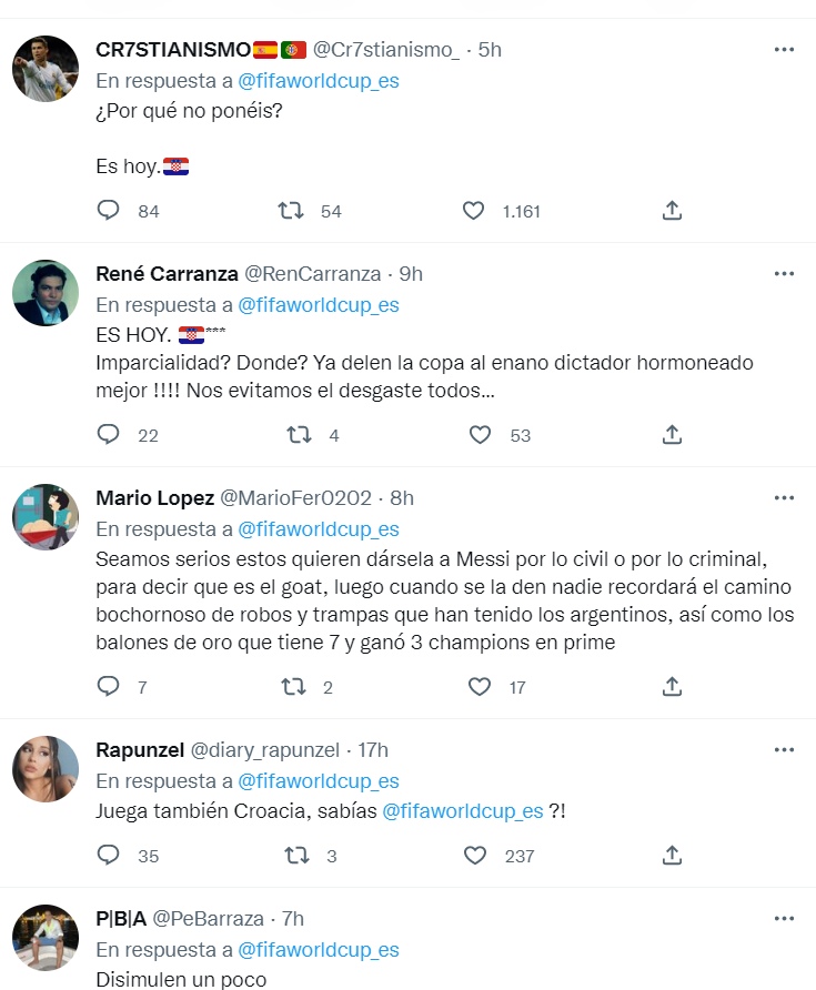 Destacándose rápidamente en el mundo de las redes sociales, la publicación se volvió viral y los comentarios negativos empezaron a caer en la cuenta de la FIFA. Señalándola de imparcial, las redes se volcaron en contra del entre rigor del fútbol mundial.