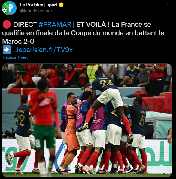 Francia consiguió casi sin despeinarse una nueva calificación a la gran final del Mundial Qatar 2022. Donde predominó su juego seguro, tranquilo, y pospuesto estético cuando lo permite el rival. Hoy Marruecos fue un cuadro incómodo, pero no le dio mayores sobresaltos.