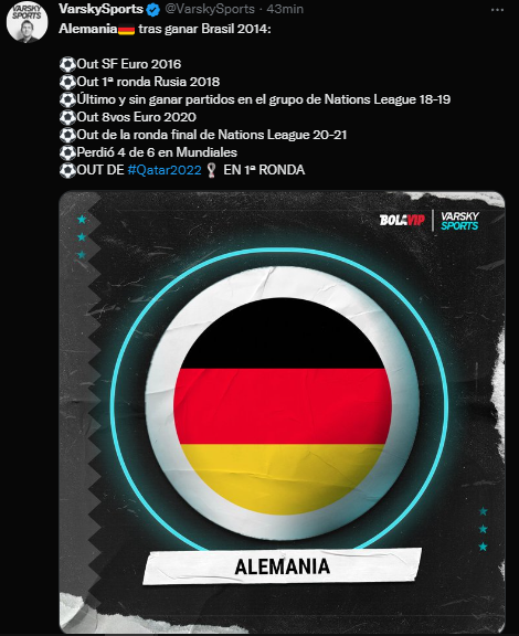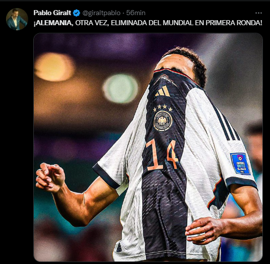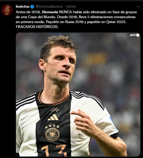 Esta vez las bromas van en contra de Alemania por haber perdido ante Japón y empatar con España en las jornadas anteriores de Qatar 2022. Los diversos medios de comunicación y reconocidos periodistas analizaron el desenlace fatídico del campeón del Mundo en Brasil 2014.