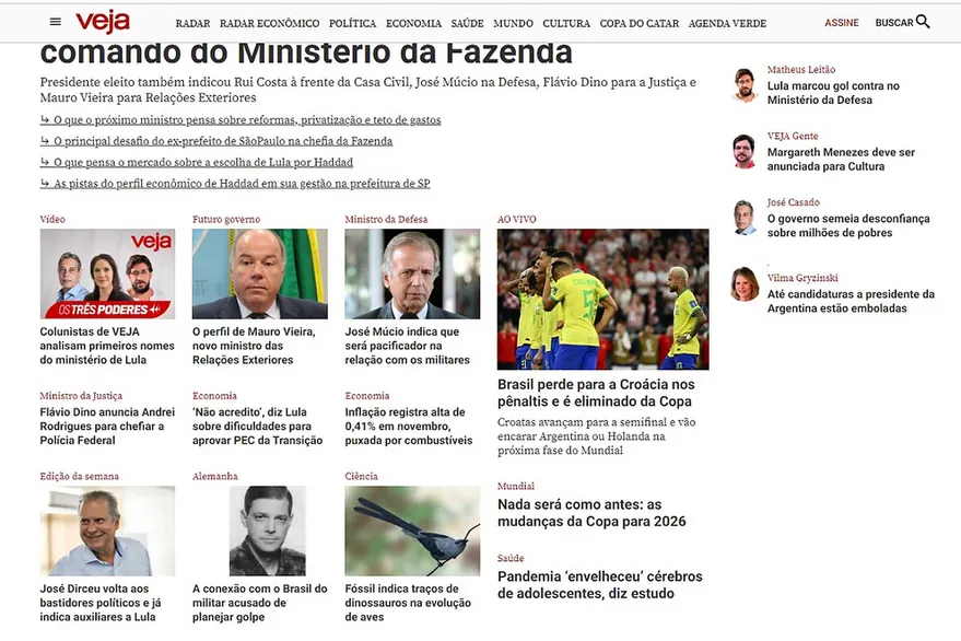 Además, la revista Veja sumó: “Brasil pierde ante Croacia en los penaltis y queda eliminado de la Copa”.