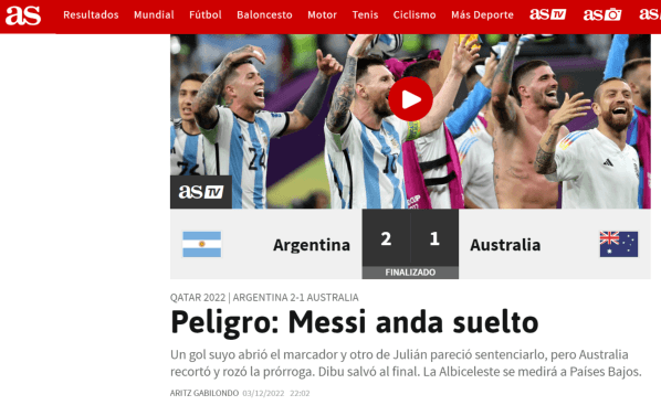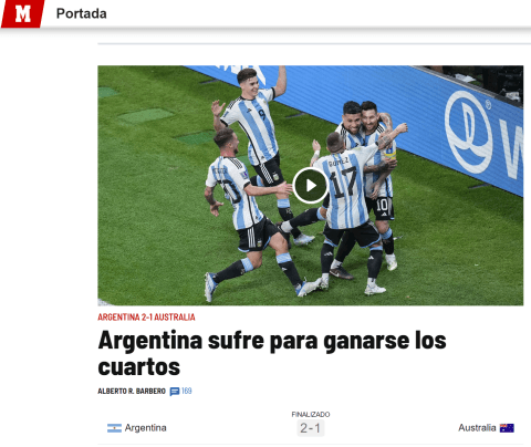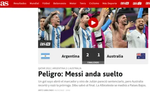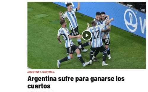 Adicionalmente, el diario Marca fue ligeramente crítico con el desempeño de la escuadra de Lionel Scaloni y tituló que accedieron a esta fase ‘sufriendo’, puesto que en los minutos finales, Australia lo puso en aprietos.