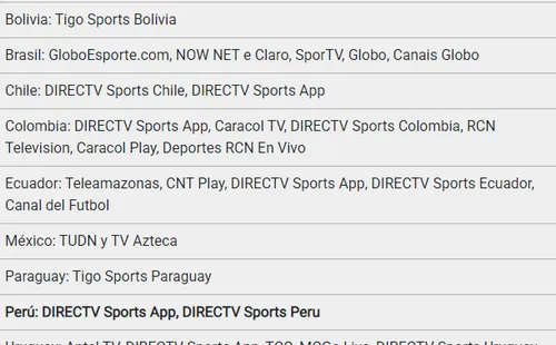 El partido Croacia vs. Marruecos por el Mundial Qatar 2022 será transmitido en Perú a través de la señal de DirecTV Sports. Sin embargo, podrás verlo desde otros países de la región en los siguientes canales: