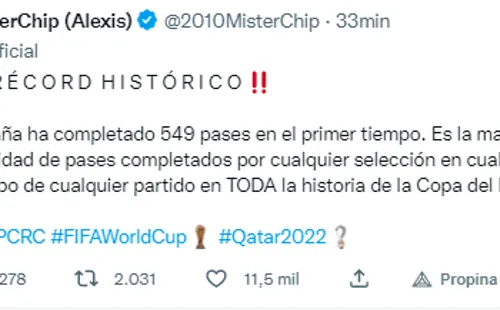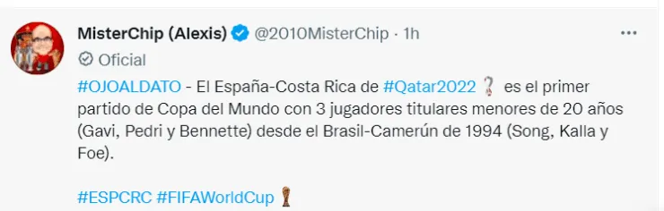 Uno de los hinchas de la Roja que más disfruta de este triunfo momentáneo es Mr. Chip, que parece que se está dejando llevar por su emoción, es que al parecer estarían publicando datos inexistentes a favor de Esapaña, como estos: