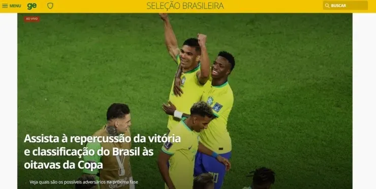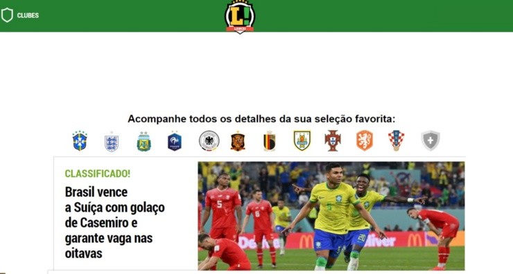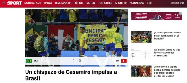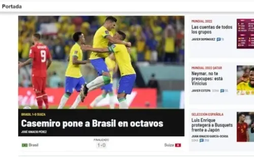 Levantando la noticia por la clasificación a los octavos de final del Mundial de Qatar 2022, los mediosGlobo Esporte y Lance valoraron el triunfo de Brasil por 1-0 ante Suiza. Brindándole la chapa de favorito, los portales elogiaron el accionar del cuadro dirigido por el estratega Tite.
