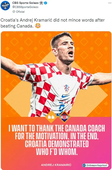 “Quiero agradecer al entrenador de Canadá por la motivación. Al final, Croacia demostró quien se jodió a quien”fueron las palabras de quien fuera elegido como el jugador del partido tras marcar un doblete en el choque ante los Canadienses.