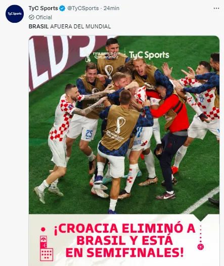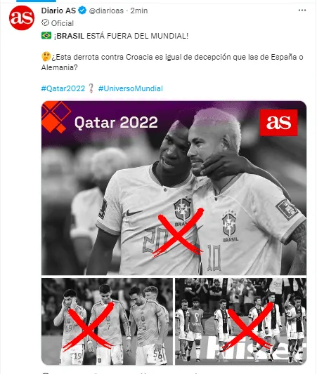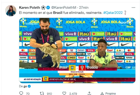 Por su parte, la prensa mundial reaccionó de muchas formas al ver la derrota de la Canarinha, aunque para algunos su eliminación ya estaba hecha hace unos días, cuando Vinícius Rodríguez, miembro de la jefatura de prensa de los brasileños, retiró de mal manera a un gato, cuando se encontraba arriba de la mesa, mientras Vinicus Jr. daba declaraciones previo al partido: